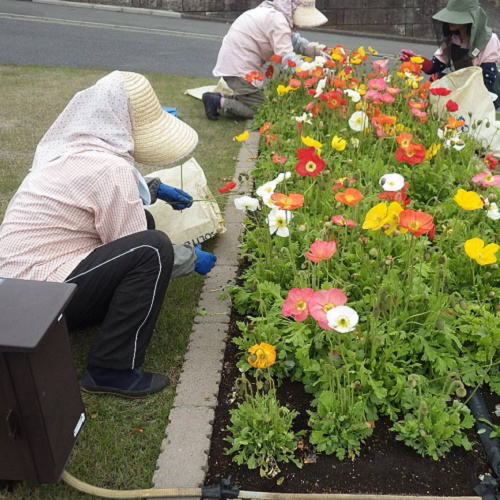 ●コンパクト花壇地植えができない場所は、プランターに植栽して季節の花を楽しんでもらいます。