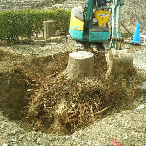 ●伐根 台風などで倒れた樹木の伐採や伐根を行います。